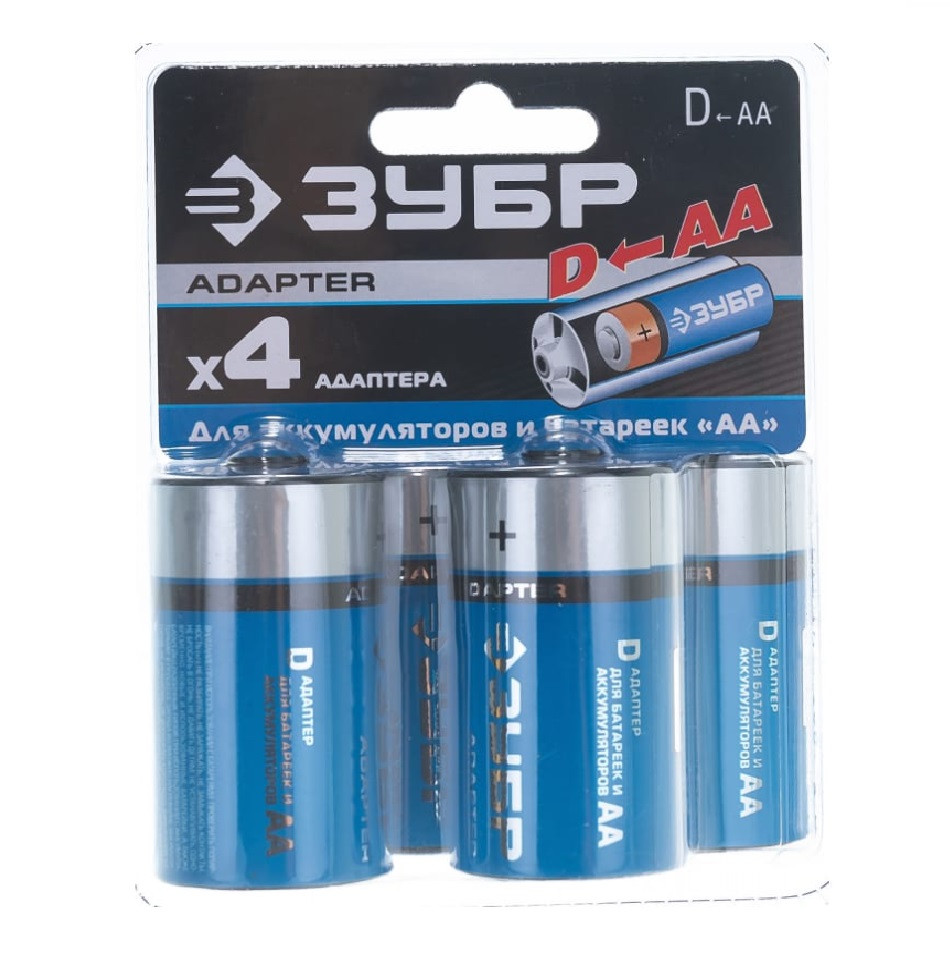 Адаптер для батареек и аккумуляторов Зубр 59278-4D с AA на D 4 шт