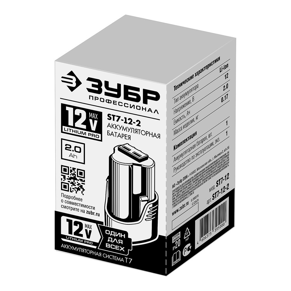 Батарея аккумуляторная Зубр Профессионал ST7-12-2 тип T7 12 В 2 Ач