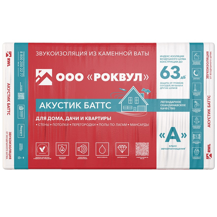 Базальтовая вата Rockwool Акустик Баттс станет надежной преградой для уличных звуков, соседских разговоров и других шумов. Звукопоглощающие плиты подойдут для установки в перегородках в общественных зданиях и частных домах/квартирах. Они выполнены из натуральной каменной ваты и обладают плотностью в 35-45 кг/м³. Это оптимальное значение для выполнения задач по шумоизоляции на высоком уровне.
