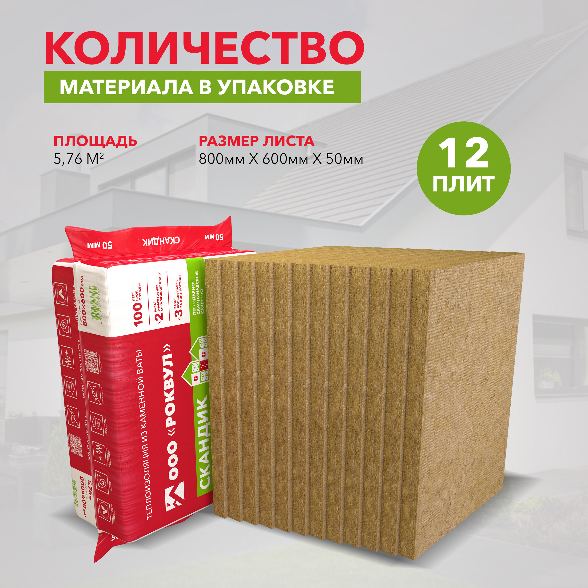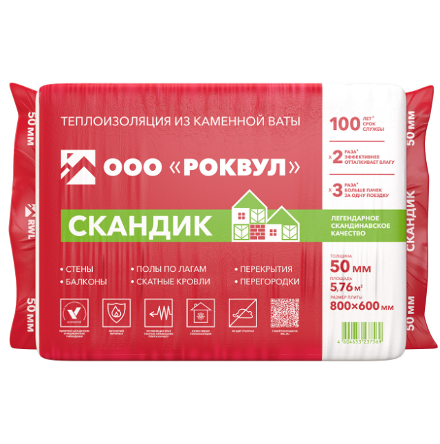 Базальтовая вата Роквул Лайт Баттс Скандик 800х600х50 мм 12 плит в упаковке