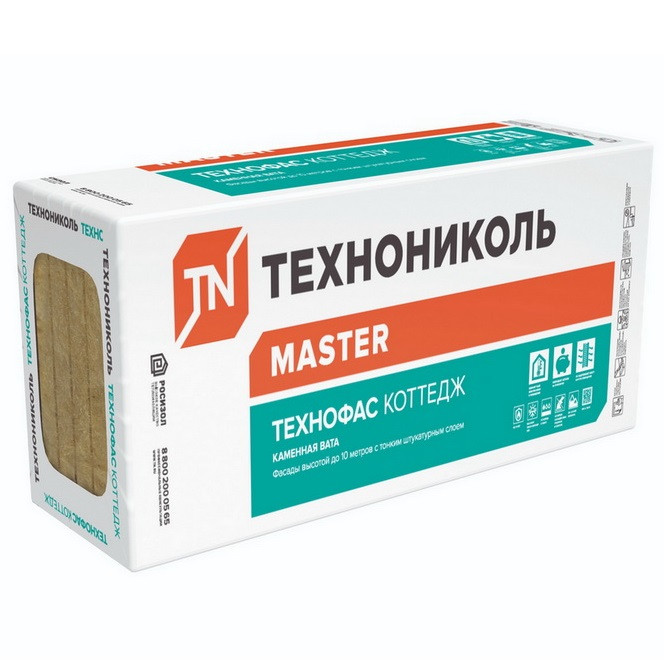 Теплоизоляция Технониколь ТехноФас Коттедж — это негорючие, гидрофобизированные тепло-, звукоизоляционные плиты из минеральной ваты на основе горных пород базальтовой группы на низкофенольном связующем.