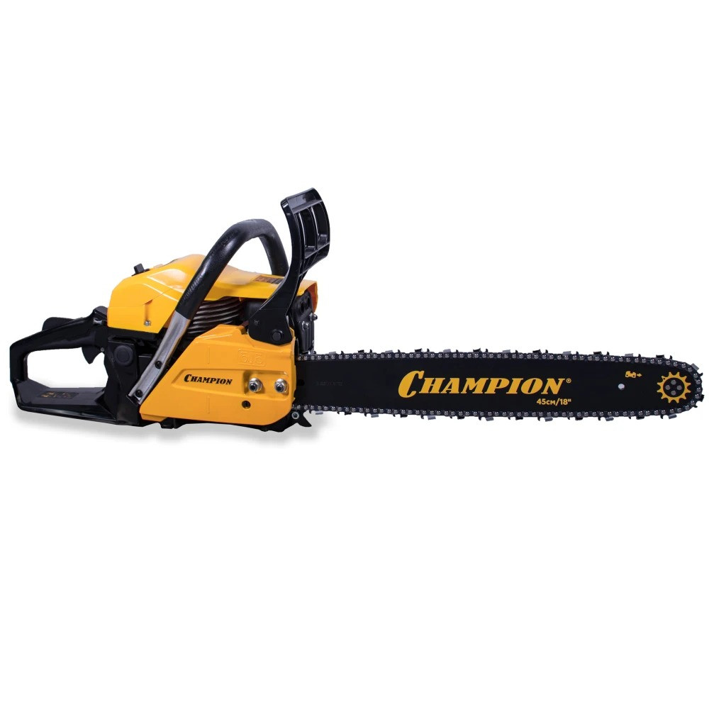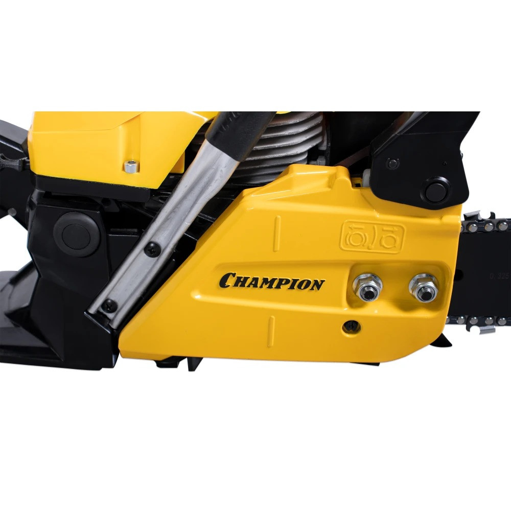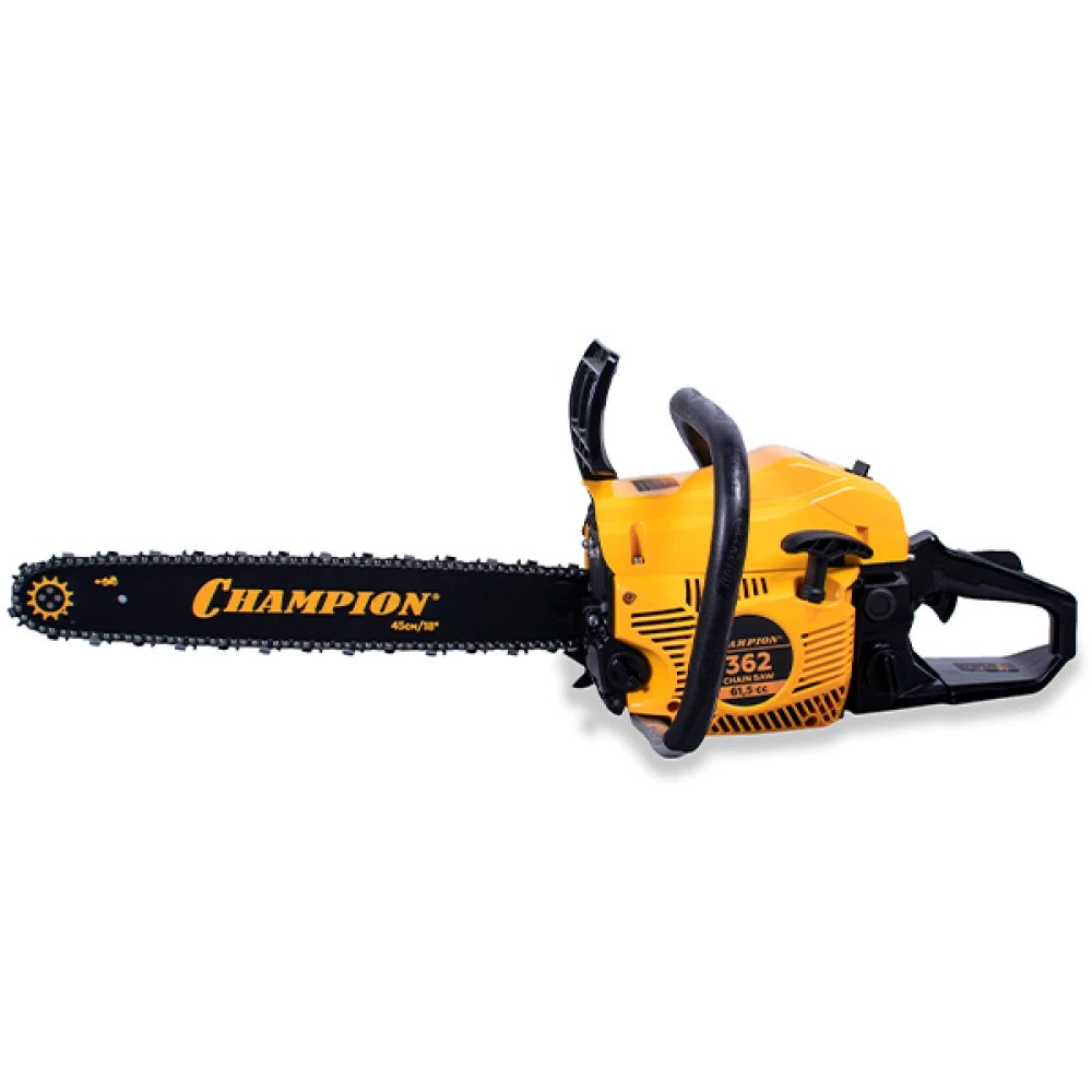 Мощная бензопила Champion 362-18" представляет собой легкую бытовую пилу для работ в саду, мелкого строительства или ремонта. Пила бензиновая оснащена надежным 2-тактным двигателем мощностью 3.5 л.с. и рабочим объемом 61.5 см3, что обеспечивает высокую производительность. Двигатель оборудован системой легкого запуска – в состав стартерной группы входит стальная пружина облегчающая раскручивание маховика двигателя, а так же в ручке стартера имеется стальная пружина, способствующая плавному и комфортному запуску двигателя.