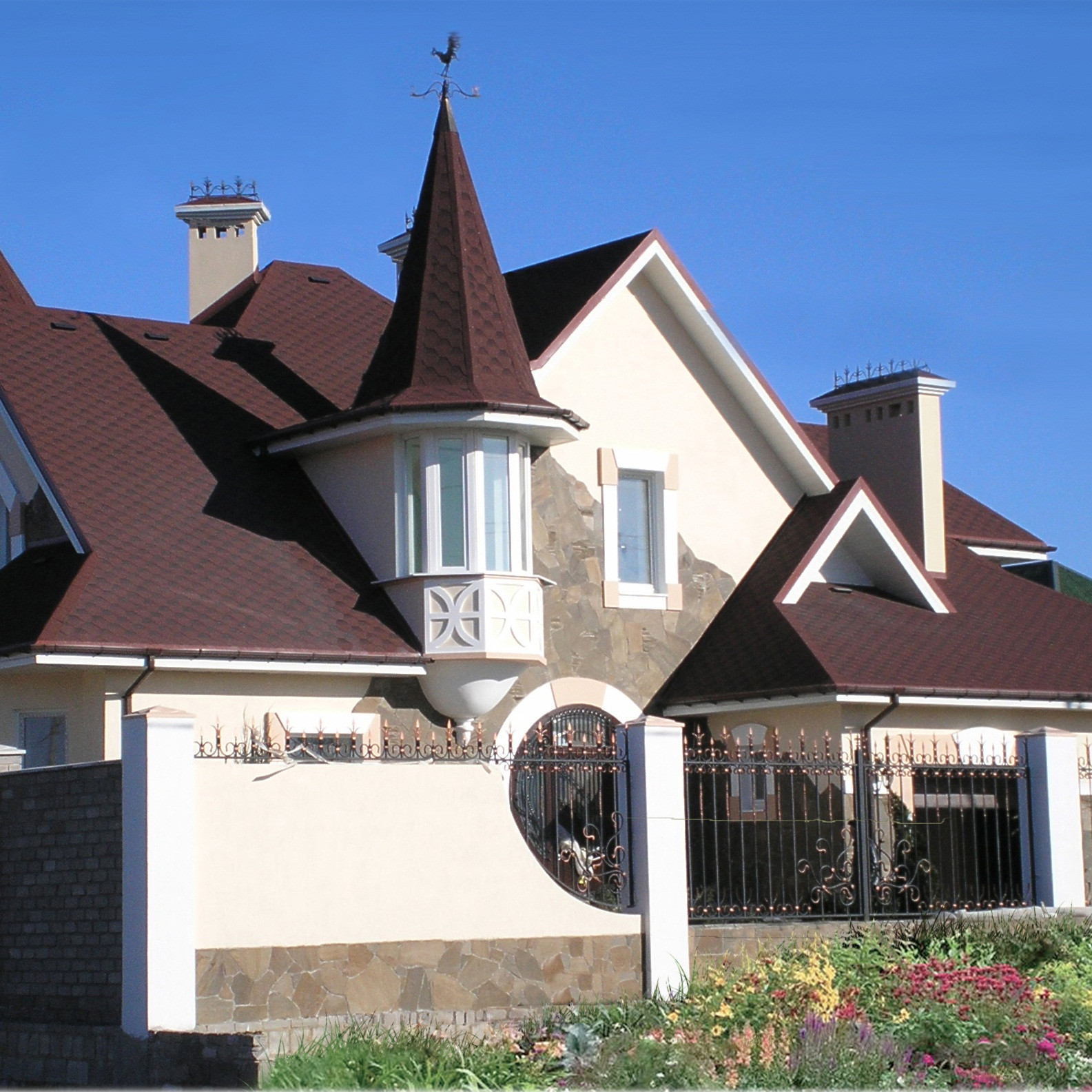 Обладая высокой прочностью, черепица Katepal используется, в том числе, на крышах с очень крутыми скатами. За счет своей пластичности, материал незаменим при работах на крышах со сложной конструкцией, кроме того, это свойство позволяет перевозить, сохранять и монтировать черепицу без повреждений.