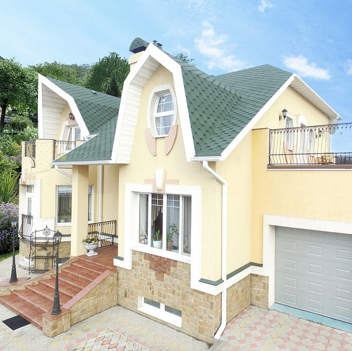Обладая высокой прочностью, черепица Katepal используется, в том числе, на крышах с очень крутыми скатами. За счет своей пластичности, материал незаменим при работах на крышах со сложной конструкцией, кроме того, это свойство позволяет перевозить, сохранять и монтировать черепицу без повреждений.