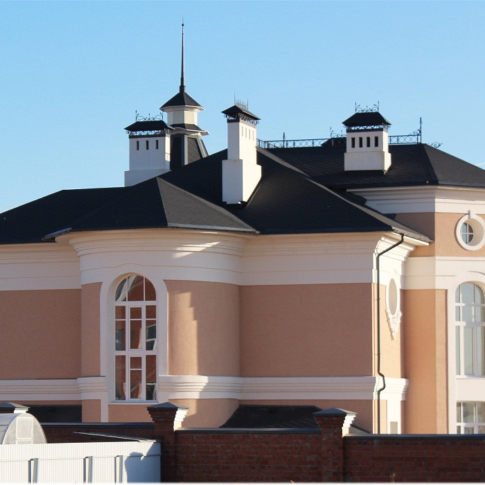Обладая высокой прочностью, черепица Katepal используется, в том числе, на крышах с очень крутыми скатами. За счет своей пластичности, материал незаменим при работах на крышах со сложной конструкцией, кроме того, это свойство позволяет перевозить, сохранять и монтировать черепицу без повреждений.