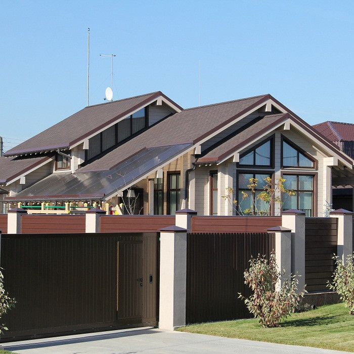 Черепица коллекции Rocky имеет нестандартную прямоугольную форму, благодаря чему придает кровле изысканный вид, напоминающий гонтовую кровлю старинного особняка. Богатая палитра цветовых вариантов предоставляют широкие возможности стилевого оформления — от готики до ренессанса.