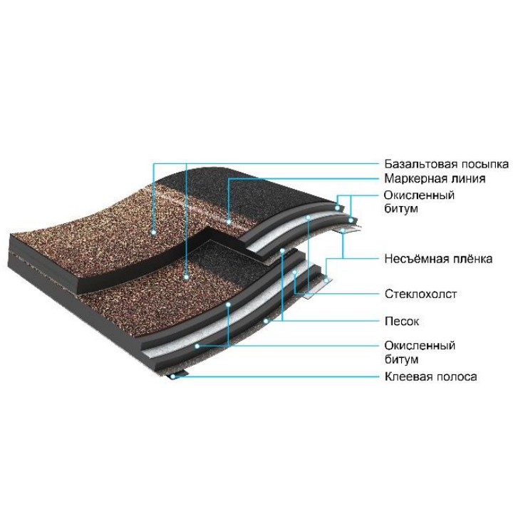 Ламинированная черепица выделяется большим отчетливым рисунком, радует взгляды роскошным видом. Такая выразительность стала доступна благодаря эксклюзивному большому гонту. Гонт состоит из верхнего фигурного гонта и нижней прямоугольной подложки, крепко склеенных между собой.
