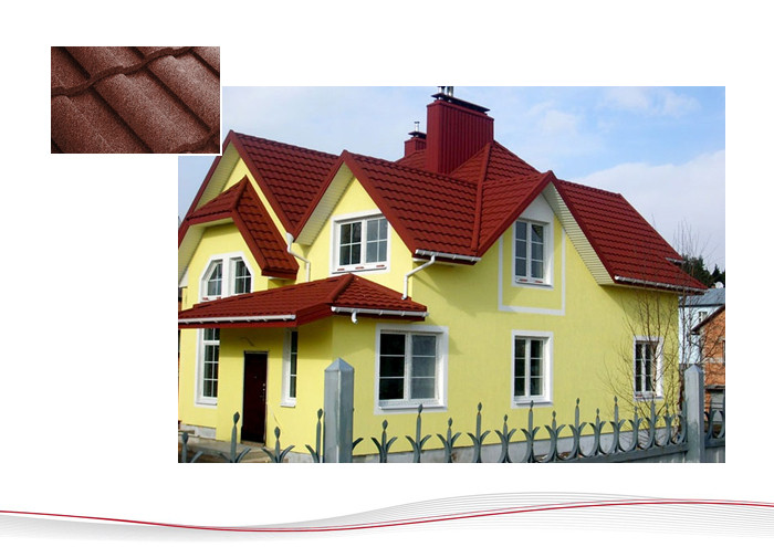 Кровельные листы образуют соединение, предотвращающее протечки, они дают отличную защиту от ураганного ветра, дождя и снега. Средний срок службы, на протяжении которого кровля не требует покраски и гидроизолирующей обработки - более пятьдесят лет. Черепица обладает высокой огнестойкостью и не воспламеняется даже при нагревании до рекордных температур - от 1000 градусов и выше, при этом она не выделят токсинов и других вредных веществ.