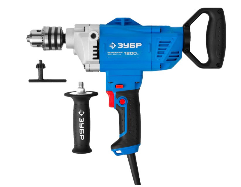 Дрель-миксер Зубр Профессионал – для сверления отверстий в различных материалах (дерево, сталь, кирпич, легкий бетон и т. д.) при установке соответствующих сверл, монтаж резьбовых соединений (при установке соответствующих бит), перемешивание ЛКМ (при установке соответствующей насадки). Лидер по соотношению мощность/удобство при сверлении отверстий в различных материалах, а также перемешивании жидких растворов ЛКМ. Профессиональный инструмент, каким он должен быть: крепкий, надежный и удобный в работе ЗУБР - сделано для Вас