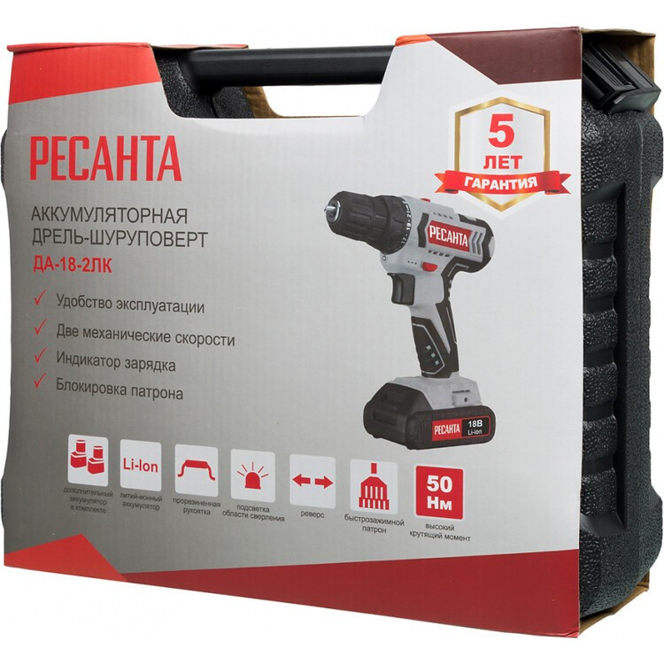 Преимущества дрели-шуруповерта аккумуляторной Ресанта ДА-18-2ЛК: