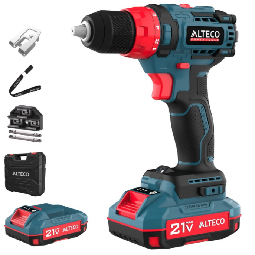 Дрель-шуруповерт бесщеточная аккумуляторная Alteco CD 21-45 BL X2 73510 мощный инструмент с регулируемым крутящим моментом сделает любую работу легкой: от закручивания и откручивания шурупов, саморезов и винтов до сверления отверстий. Универсальность и точность в каждой детали!