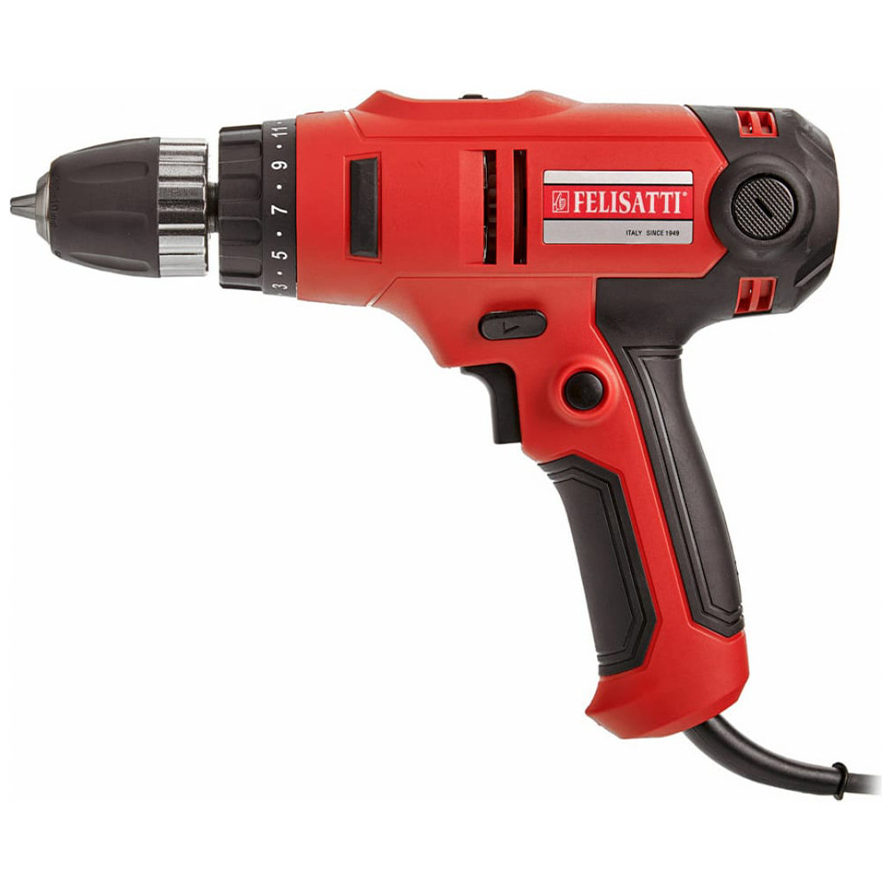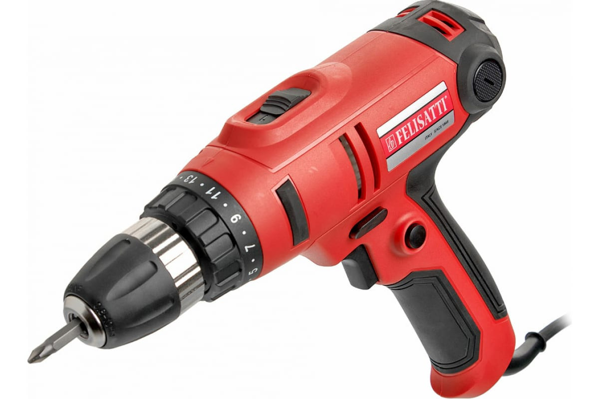 Сетевая дрель-шуруповерт предназначена для бытового использования и применения в мастерских, там, где доступен источник питания. Модель оснащена прорезиненным морозостойким сетевым проводом DIN VDE H05RN-F. Для ограничения усилия закручивания, дрель-шуруповерт Felisatti оснащена ограничителем максимального крутящего момента с 20 ступенями регулирования.
