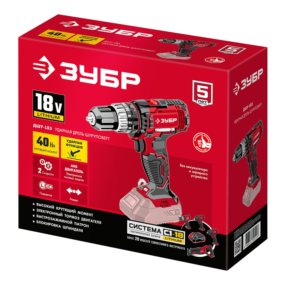 Дрель-шуруповерт ударная Зубр Мастер ДШУ-185 18В