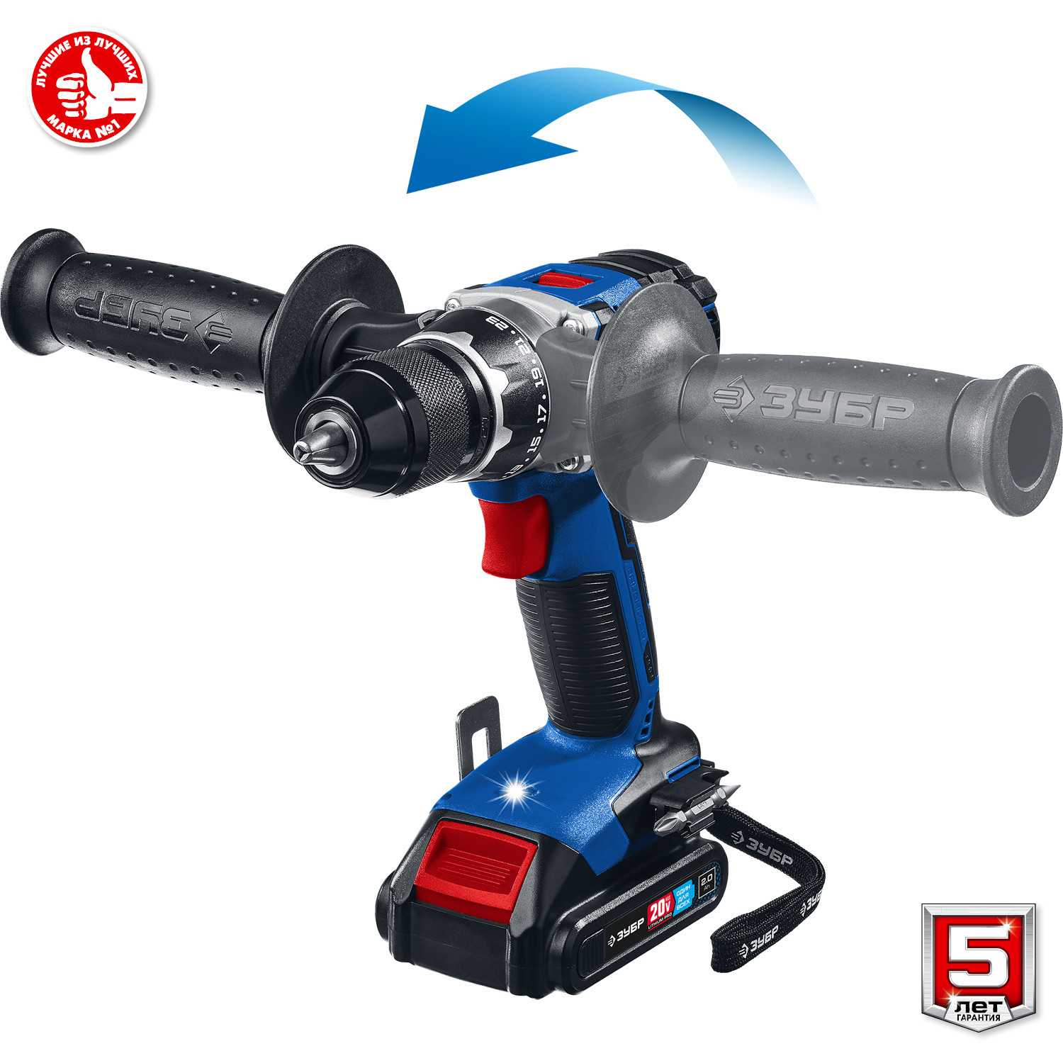 - Скоба крепления на поясе и битодержатель устанавливаются с любой стороны инструмента.