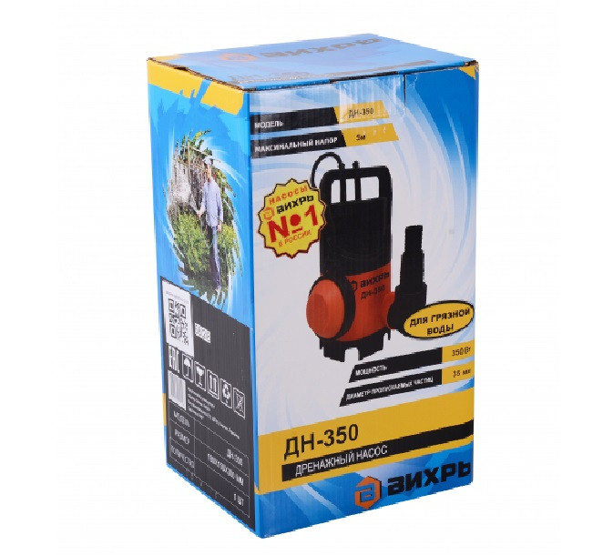 Дренажный насос Вихрь ДН-350 перекачивает чистую и загрязненную воду с частицами размером до 35 мм. Используется на даче в системах полива, для понижения уровня грунтовых вод. Поплавковый механизм служит для автоматического включения/выключения. Патрубок универсального размера позволяет подсоединять различные шланги. Термопротектор защищает двигатель от перегрева.
