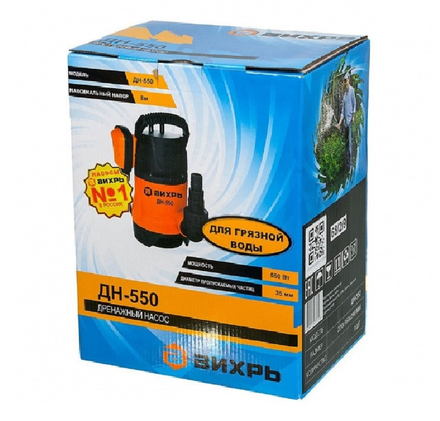 Дренажный насос Вихрь ДН-550 предназначен для осушения затопленных помещений, откачки воды из строительных котлованов и цистерн. Возможно применение как в стационарном, так и в мобильном режиме для откачки воды, благодаря встроенной ручке для транспортировки. Способен перекачивать сильно загрязненную воду с допустимым размером частиц до 35 мм. Для автоматического включения/выключения насос оснащен поплавковым механизмом, что защищает от сухого хода.
