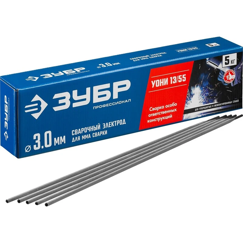 Электроды с основным покрытием Зубр УОНИ 13/55 имеют высококачественное основное покрытие металлического стержня, позволяющее вести сварку особо ответственных металлических конструкций во всех пространсвенных положениях, кроме "сверху-вниз". Обладают легким розжигом сварочной дуги на постоянном токе обратной полярности. В химичиском составе покрытия полностью отсутствут содержания серы и хлора.