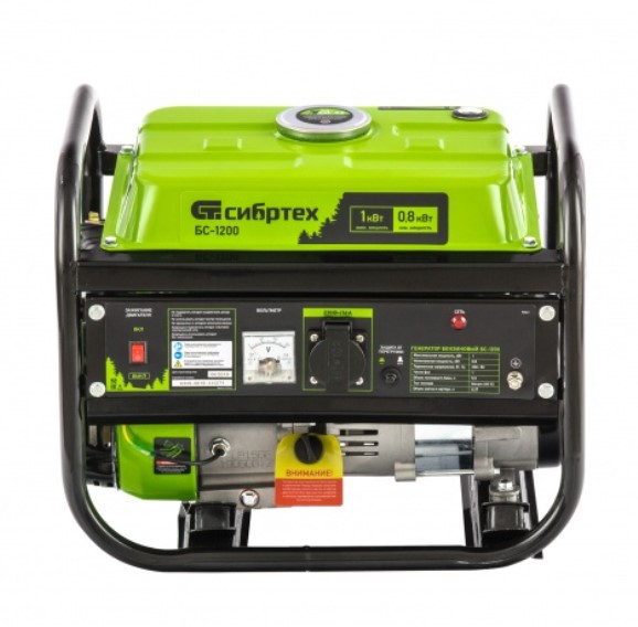 Электрогенератор бензиновый Сибртех БС-1200 94541 является портативным бензогенератором и отлично подойдет для электропитания на стройке или в мастерской, а также может выступать в качестве резервного источника электроэнергии для загородного дома. Позволяет подключить бытовые приборы, а также способен питать садовую технику и электроинструменты небольшой мощности. Передняя панель имеет обозначения на русском языке и простые для понимания индикаторы рабочих параметров.