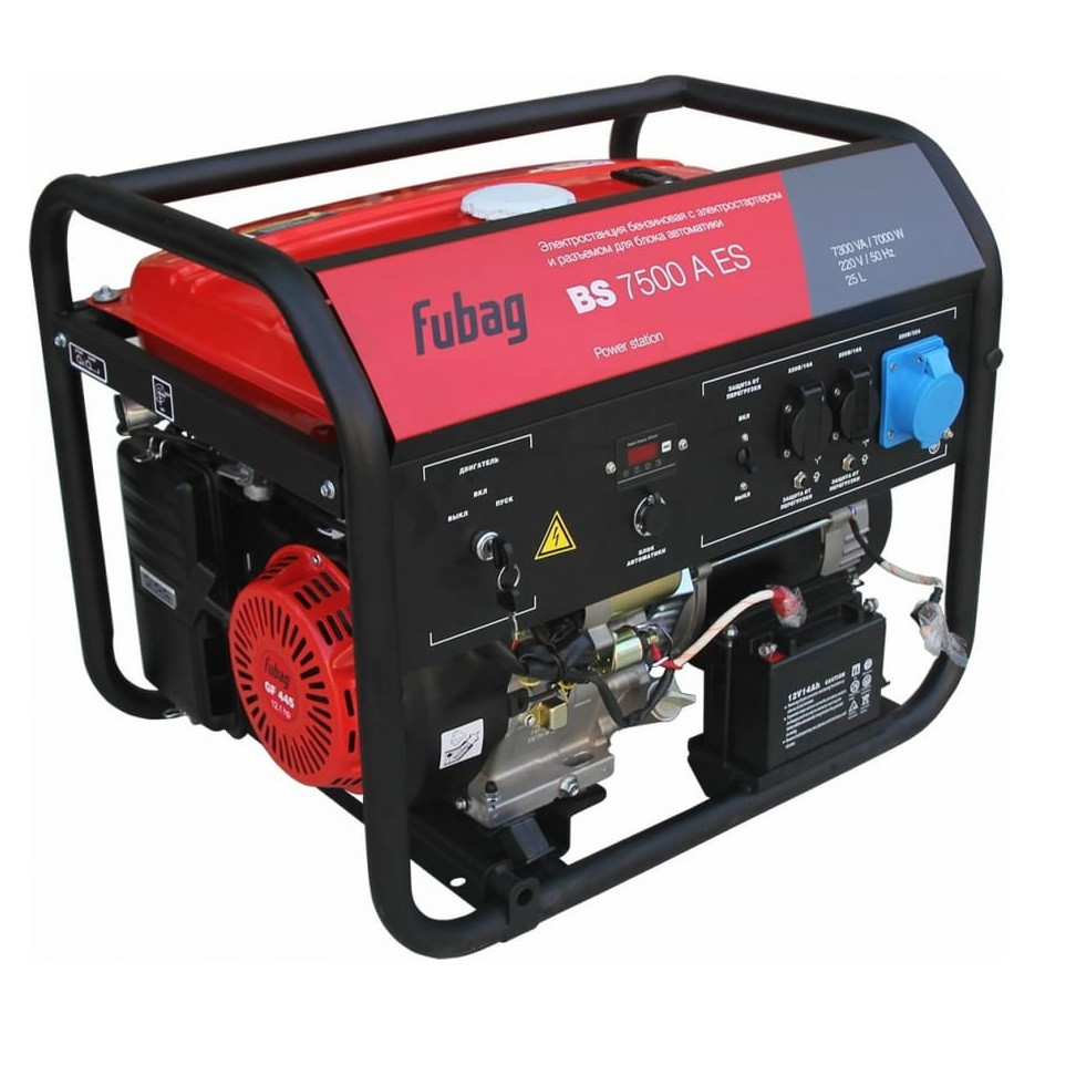 Электростанция бензиновая Fubag BS 7500 A ES 641031 подходит для резервного энергоснабжения загородного дома, а также для основного обеспечения инструментов и оборудования в условиях строительной площадки или автомастерской. В конструкции генератора предусмотрены 3 розетки (2 евро, 1 усиленная), позволяющие подключить однофазные потребители суммарной мощностью до 7000 Вт. Имеет возможность подсоединения блока автоматического управления (приобретается отдельно).