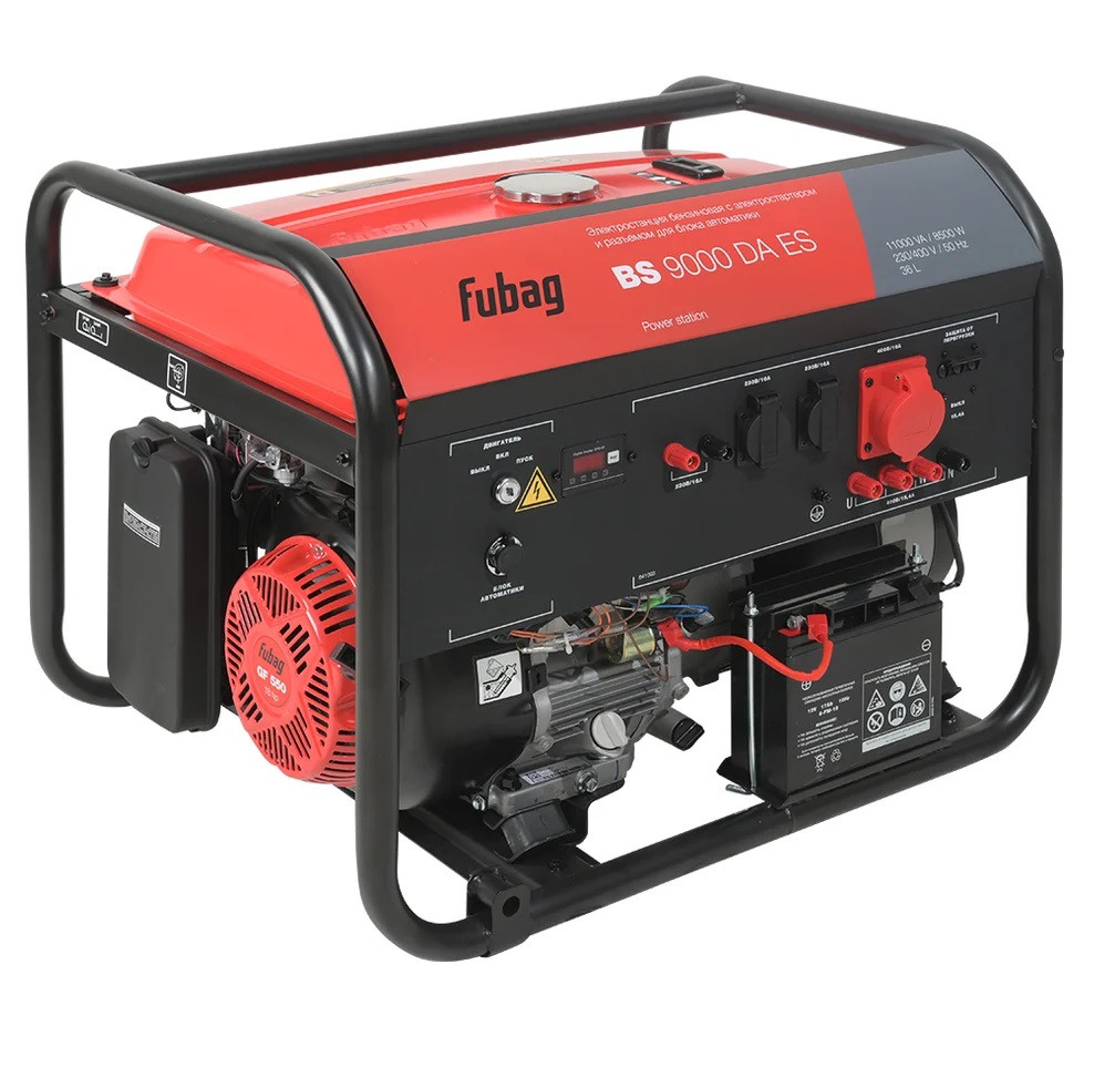 Электростанция бензиновая Fubag BS 9000 DA ES 641093 с электростартером и коннектором автоматики прекрасный выбор для резервного электроснабжения загородного дома. Модель отлично подходит для работы с большим количеством потребителей или нагруженными электромоторами. Генератор полностью совместим с блоками автоматики серии BS.