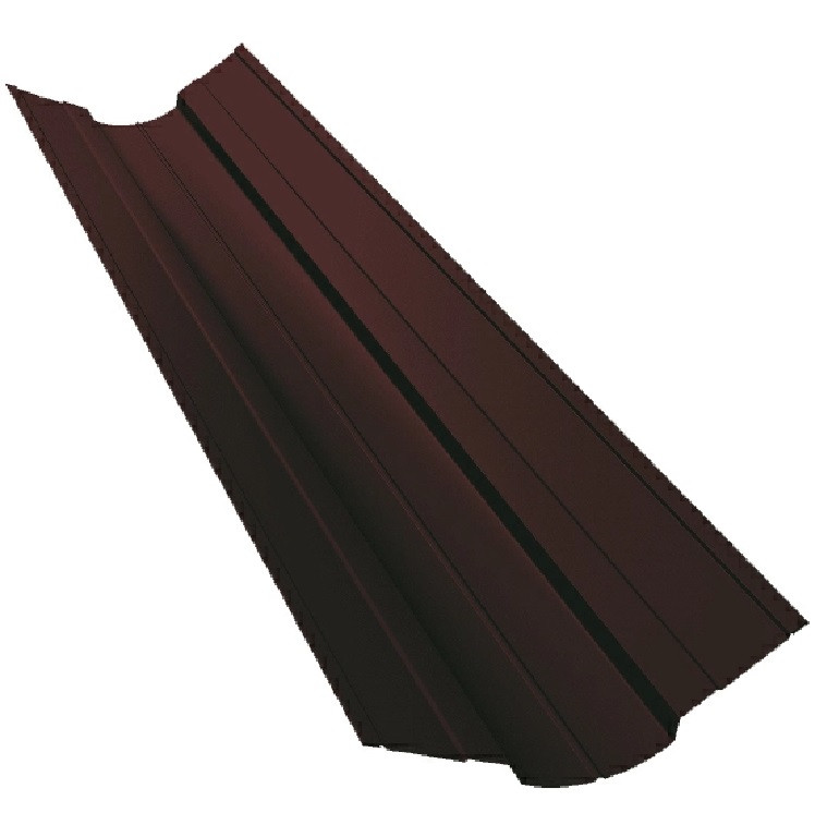 Ендова верхняя фигурная Grand Line Pe RR32 70х70 мм резка обязательный элемент сооружения, который украшает и защищает кровельные конструкции. Накладка придает зданию законченный вид. Фигурную планку устанавливают в месте примыкания двух скатов. Назначение верхней ендовы — защита от протекания и последующего разрушения. Благодаря изделию, дождь и растаявший снег быстрее стекают с крыши. Элемент дополнительно усиливает кровельную конструкцию.