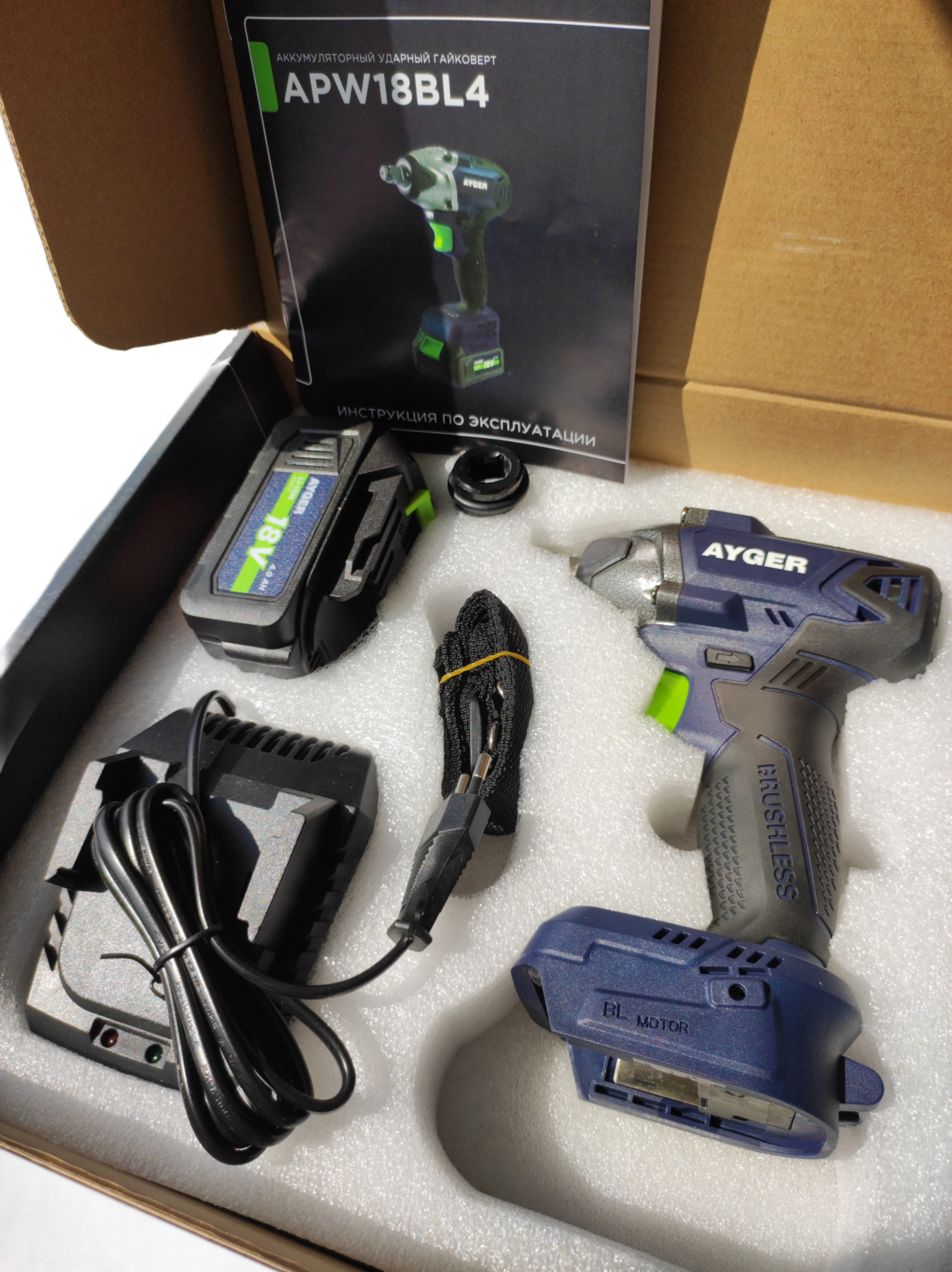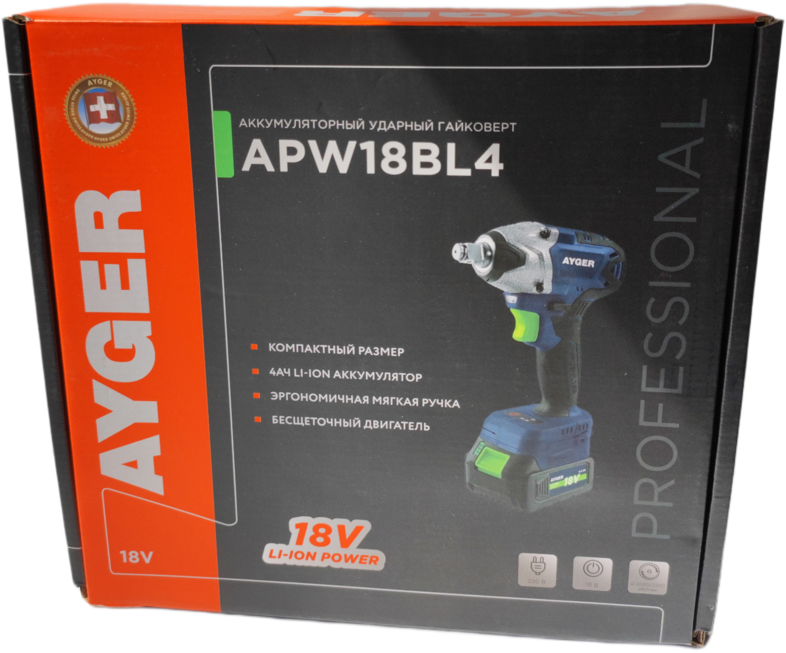 Гайковерт аккумуляторный Ayger APW18BL4 4Ah бесщеточный