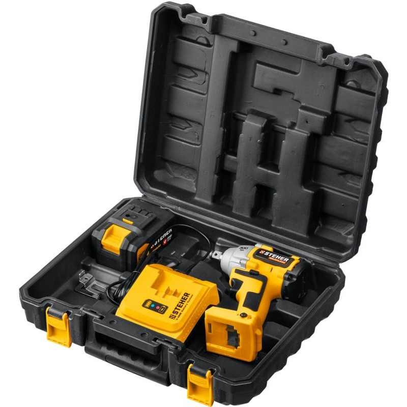 Гайковерт ударный аккумуляторный Steher - производительное изделие с передовым бесщеточным двигателем. Высокий крутящий момент в совокупности с большим ресурсом двигателя делают гайковерт необходимым инструментом в автосервисе, на строительной площадке и сборочном производстве.