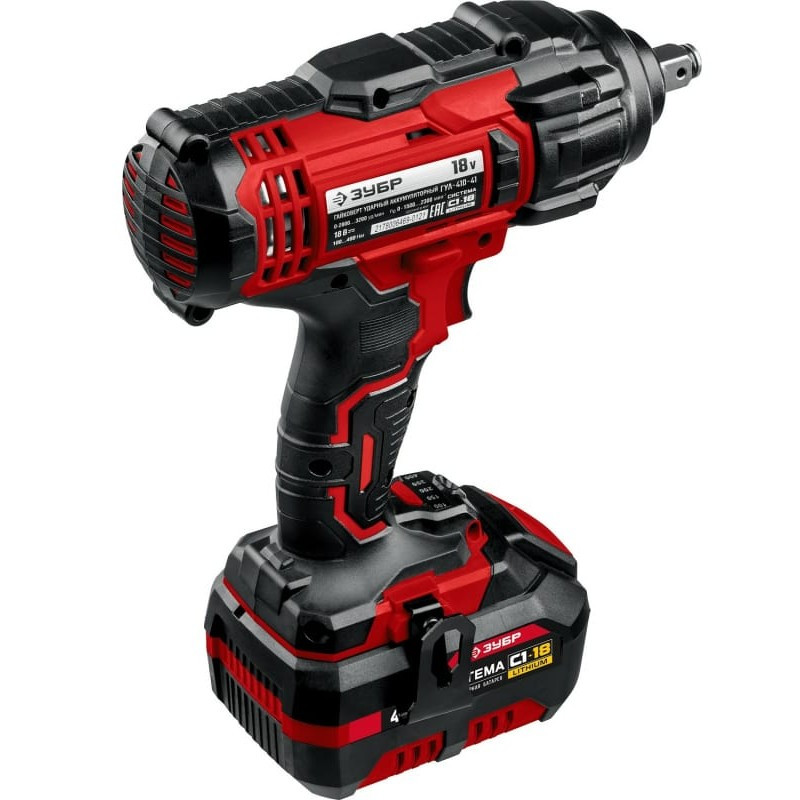 Ударный аккумуляторный гайковерт Зубр - мощное изделие для заворачивания и отворачивания крепежа (при сборке и разборке металлических конструкций, снятии или установке колес автомобиля и т.д.) благодаря крутящему моменту 400 Нм. Огромный регулируемый крутящий момент и увеличенная емкость аккумулятора позволяет использовать его для самых тяжелых работ в любой области.