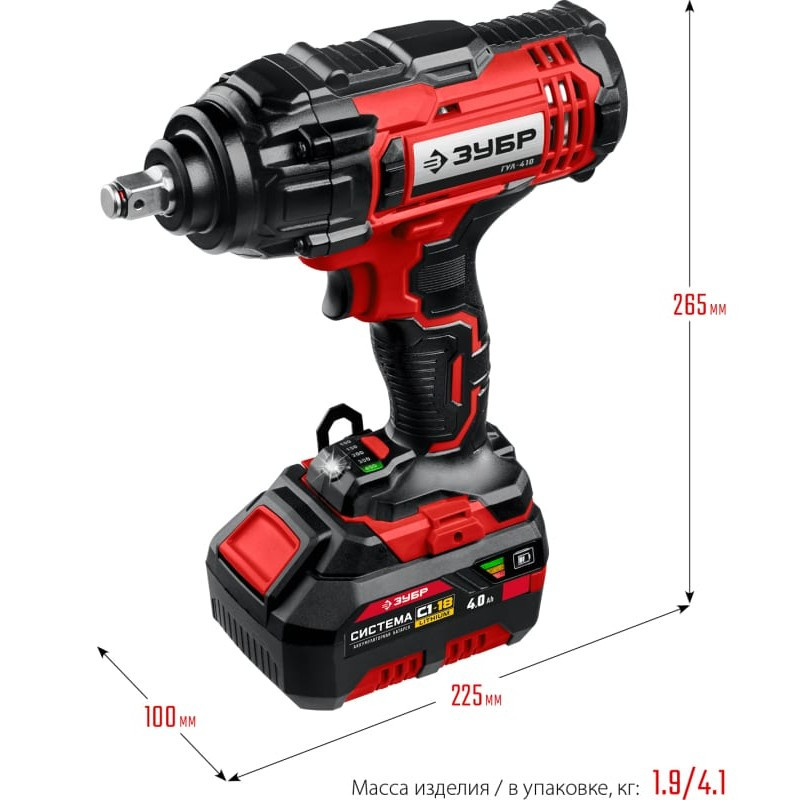 Гайковерт ударный аккумуляторный Зубр Мастер ГУЛ-410-41