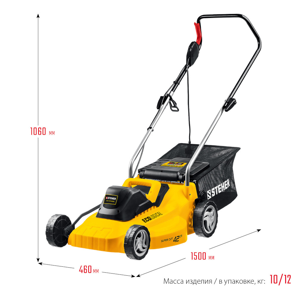 Газонокосилка сетевая Steher - безупречный уход за газоном с комфортом и без малейших затруднейний. Мощный электрический двигатель , простое управление, а также прочный и легкий корпус служат гарантом этого.
