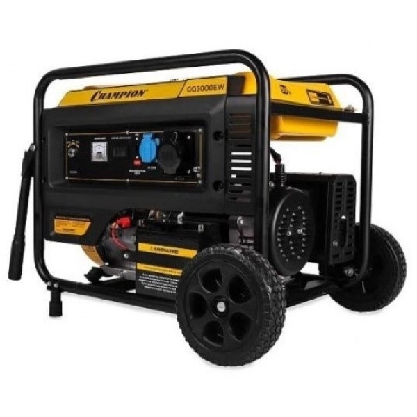 Бензиновый генератор Champion GG5000EW представляет собой источник качественного тока. Контроль за напряжением обеспечивает стабильность синусоиды даже при резком изменении уровня потребления электротока как в большую, как и в меньшую сторону. Также устройство защищено от влаги со всех сторон. В том числе имеют надежную влагозащиту и сами розетки - на них установлены заглушки, которые исключают попадание воды на контакты. Это защищает от короткого замыкания при работе на улице в дождливую погоду.