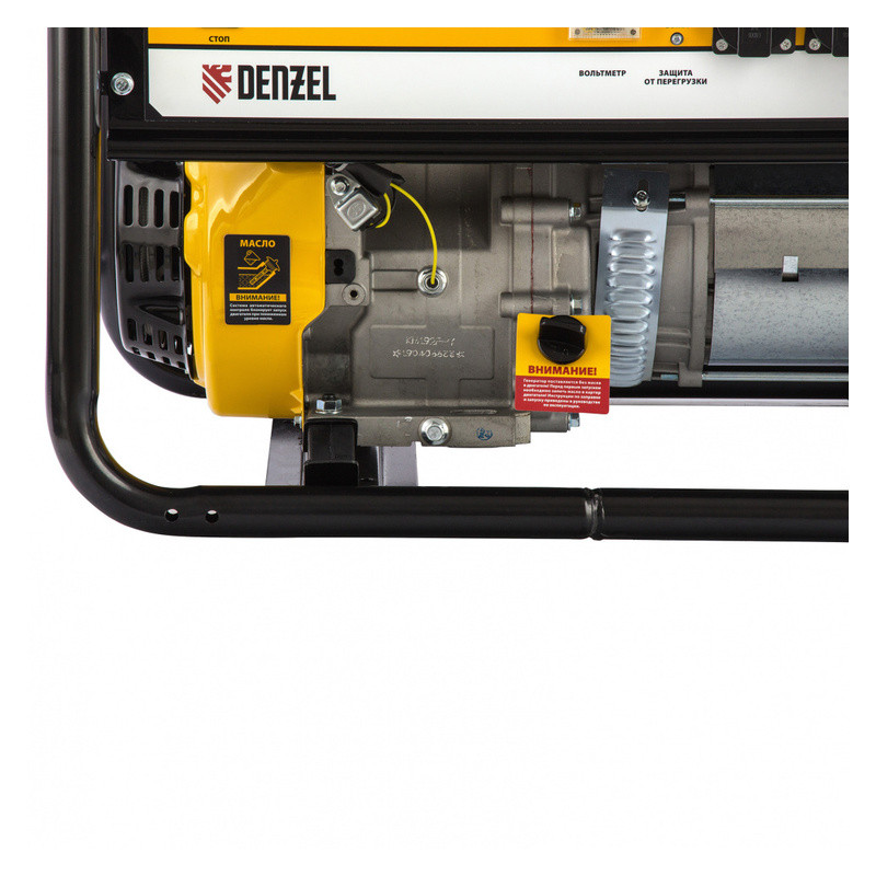 - бензиновый генератор Denzel имеет воздушное охлаждение, на выходе переменный ток. Количество розеток – 3 штуки.