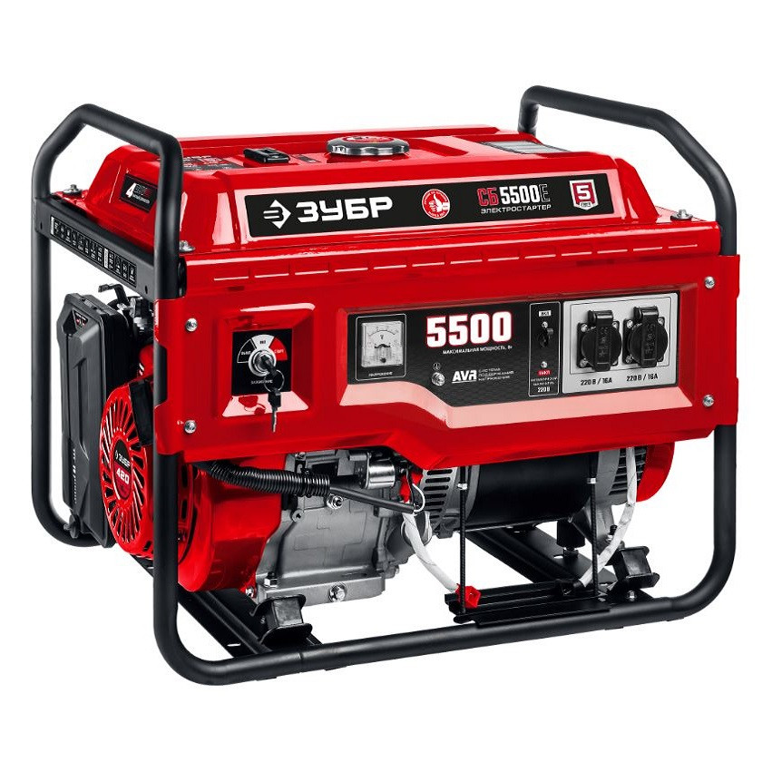 - Генератор бензиновый с электростартеро Зубр Мастер СБ-5500Е 5,5 кВт для автономного питания потребителей качественной электроэнергией при небольших затратах.
