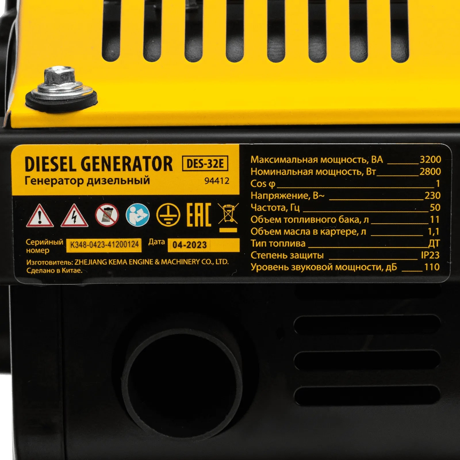 Генератор дизельный Denzel DES-32E 94412 с электростартером 3,2 кВт