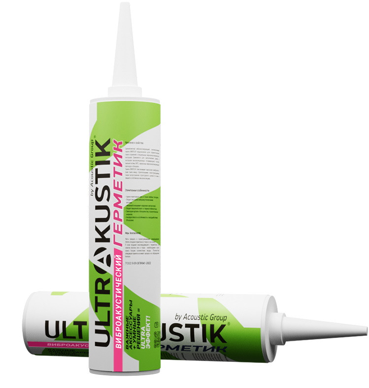 Герметик Ультракустик – виброакустический модифицированный силиконовый герметик. Применяется для герметизации швов и стыков. Обеспечивает защиту от распространения структурных вибраций по компонентам звукоизолирующих конструкций. Повышает собственные звукоизолирующие свойства конструкции.
