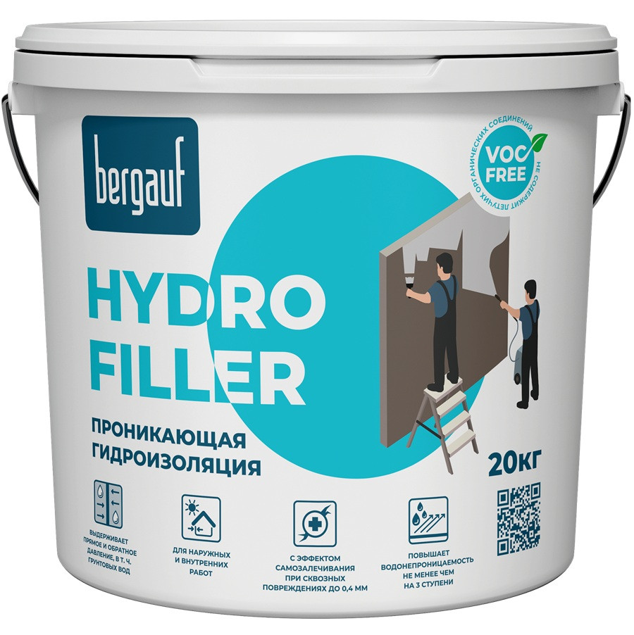 Bergauf Hydro Filler – это проникающая гидроизоляция, защищающая бетонные и железобетонные конструкции от воздействия талой, грунтовой и морской воды, а также технологической среды, карбонизации, жидкой среды, антиобледенительных солей, кислот, щелочи. Формирует гидроизоляционный слой не на поверхности фундамента, а в его толщине.