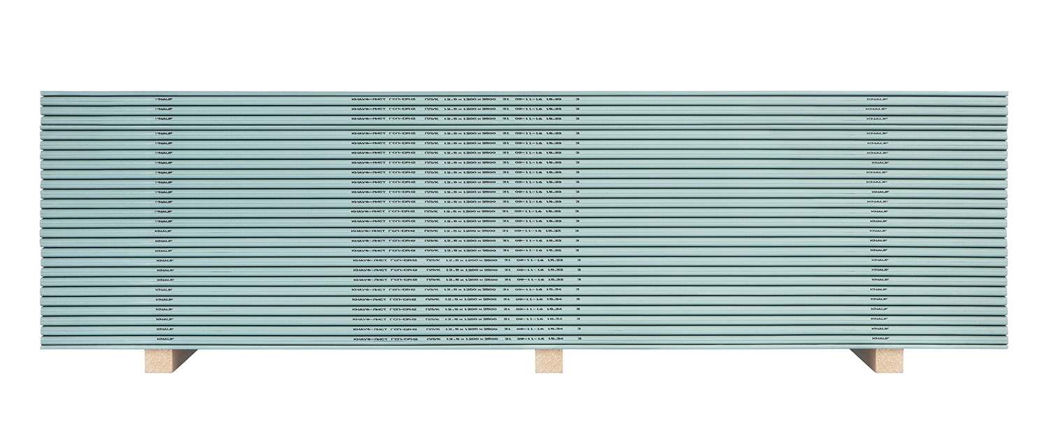Гипсокартон Knauf ГСП-DFН2 влагоогнестойкий - гипсовая строительная плита повышенной плотности, стойкая к огневому воздействию пламени и влаги (тип D, F, H2 по ГОСТ 32614-2012) Гипсокартон Knauf ГСП-DFН2 влагоогнестойкий - сочетает в себе свойства огнестойкого и влагостойкого листов.