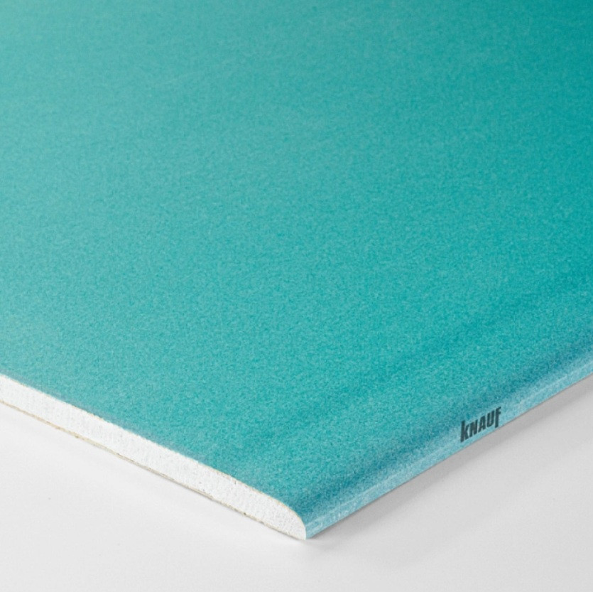 Гипсокартон повышенной влагостойкости Knauf ГКЛ ГСП-Н1 Аквамарин 2500х1200х12,5 мм с минимальным водопоглощением в соответствии с ГОСТ 32614-2012. Применяется для устройства перегородок, подвесных потолков, облицовок стен в зданиях и помещениях с сухим, нормальным и влажным температурно-влажностными режимами по СП 50.13330.201 «Тепловая защита зданий», в таких как кухня, ванная и санузел без гидроизоляции. Создает благоприятный для человека микроклимат в помещении. Служит надежной основой для декоративной отделки и крепления тяжелых предметов.