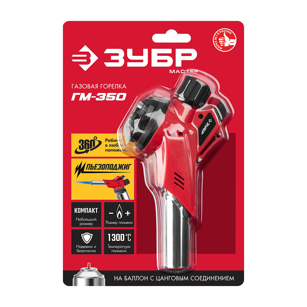 Горелка газовая на баллон Зубр Профессионал ГМ-350 55553 с пьезоподжигом