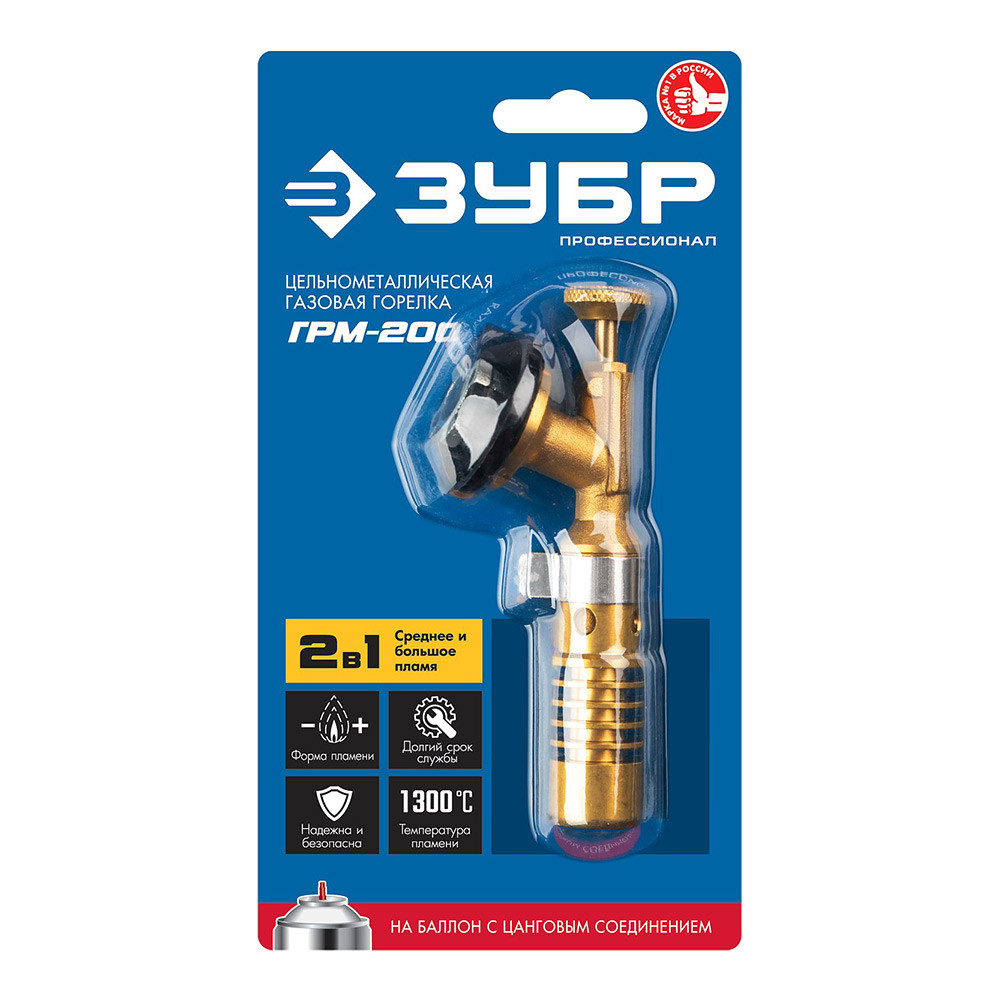 Горелка газовая Зубр Профессионал ГРМ-200 55556 на баллон с цанговым соединением