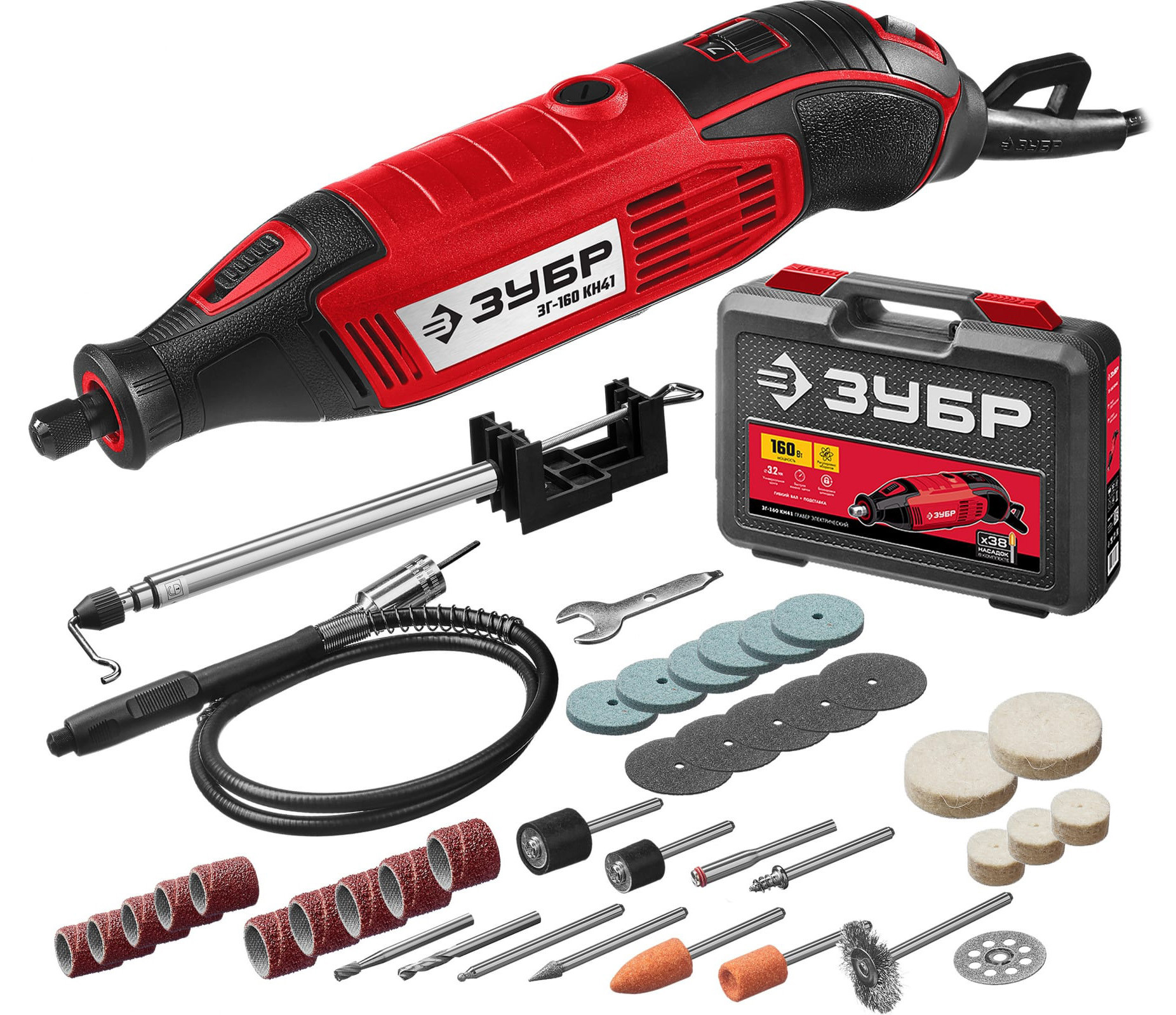 Гравер электрический Зубр 41 предмет кейс ЗГ-160 КН41