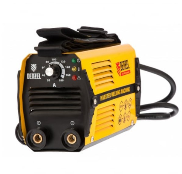 роизводительный и легкий аппарат инверторный дуговой сварки Denzel DS-180 Compact с максимальной силой тока 180 А. Используется для дуговой сварки стальных металлоконструкций. Пригодится профессионалам и любителям для мастерской, в загородном доме или в гараже. С его помощью можно быстро освоить сварку. Работу облегчают функции: горячий старт, форсаж дуги и антизалипание электрода.
