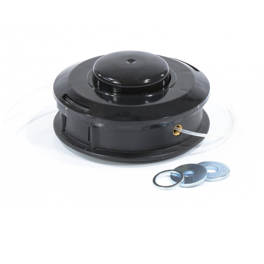 - В корпусе катушки расположен сердечник, на который наматывается леска диаметром до 2,4 мм, позволяющая скашивать как однолетнюю траву, так и многолетние сорняки.