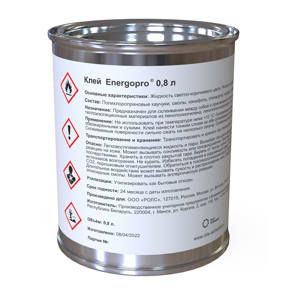 Клей Energopro предназначен для склеивания между собой и приклеивания на металлические поверхности теплоизоляционных материалов из пенополиэтилена, пенополиолефинового пластомера и пенокаучука.