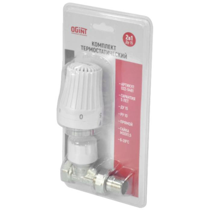 Комплект термостатический для радиатора Ogint 022-5482 угловой Ду 15 Ру 10 М30х1,5 - предназначен для ручного или автоматического регулирования расхода теплоносителя через радиаторы двухтрубных систем отопления. Клапаны рассчитаны для работы с теплоносителем с температурой до 120 °С и давлением до 1,0 Мпа. В качестве рабочей среды, помимо воды могут использоваться растворы этиленгликоля и пропиленгликоля (до 50%), а так же другие жидкости, нейтральные по отношению к материалам клапанов. Прямой и угловой клапаны отличаются впускными и выпускными патрубками, которые могут располагаться прямолинейно или под углом. Может подключатся к системам на 1/2 или на 3/4 дюйма.