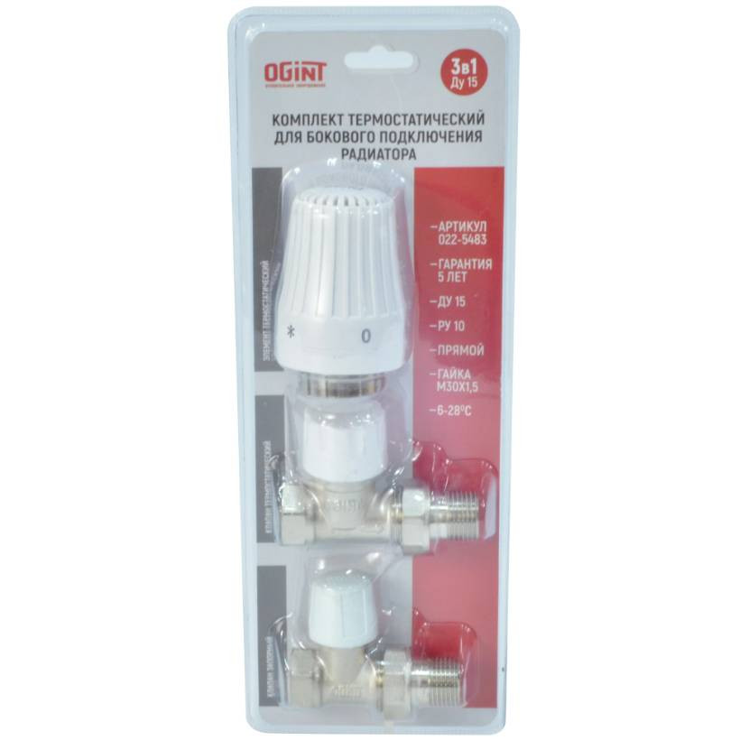 Комплект термостатический для радиатора Ogint 022-5483 прямой Ду 15 Ру 10 М30х1,5