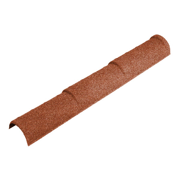 Конек полукруглый тройной Metrotile Терракот - доборный элемент, который применяется для скатных кровель. Является важной составляющей крыши Metrotile. Позволяет красиво оформить верхнюю часть кровли и придать конструкции эстетически завершённый вид. Вместе с этим он обеспечивает циркуляцию воздуха в подкрышном пространстве и принимает на себя основную нагрузку от неблагоприятных внешних факторов.