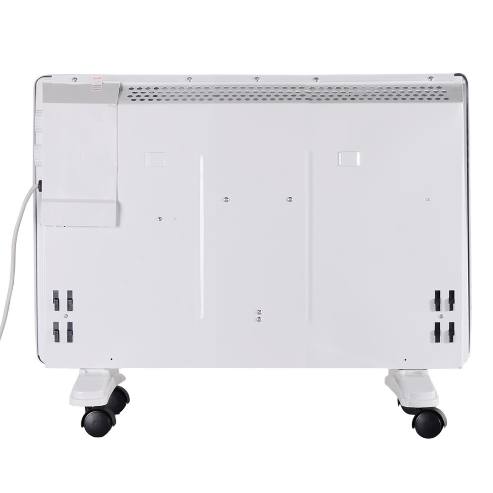 Обогреватель работает в двух режимах - помимо номинальной мощности предусмотрен экономичный режим. Установленный температурный режим поддерживает встроенный механический термостат. Точность температурных показателей составляет 1ºC. Все элементы управления расположены на боковой панели корпуса.Конвектор безопасен в эксплуатации. Температура передней панели при максимальной мощности не поднимается выше 65ºC. Встроенный тепловой датчик отключает прибор в случае перегрева. Влагоустойчивый корпус позволяет использовать обогреватель в таких помещениях, как ванные комнаты.