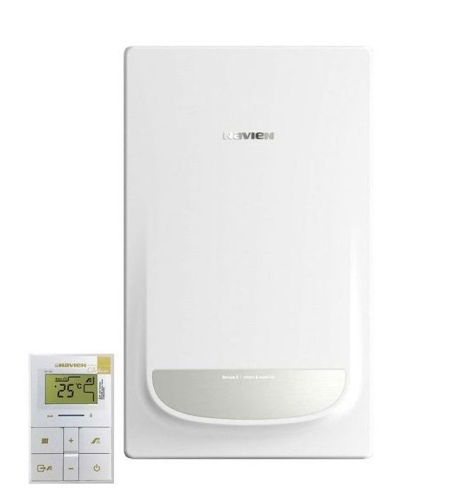 Котел газовый конвекционный Navien Deluxe S PNGB3500016L001 16K двухконтурный 16 кВт двухконтурного типа с закрытой камерой сгорания. В этой модели сохранены преимущества первого поколения: вентилятор с изменяемой частотой вращения, дифференциальный датчик давления воздуха, защита контроллера от перепадов напряжения SMPS-чипом. Котел также комплектуется выносным пультом управления. Модернизация коснулась гидравлических компонентов, а также стал намного упрощен процесс снятия вторичного теплообменника, трехходового клапана и узлов гидрогруппы. Кроме того, был изменен принцип контроля наличия теплоносителя в отопительном контуре: вместо датчика протока в контуре отопления теперь появился датчик давления теплоносителя.