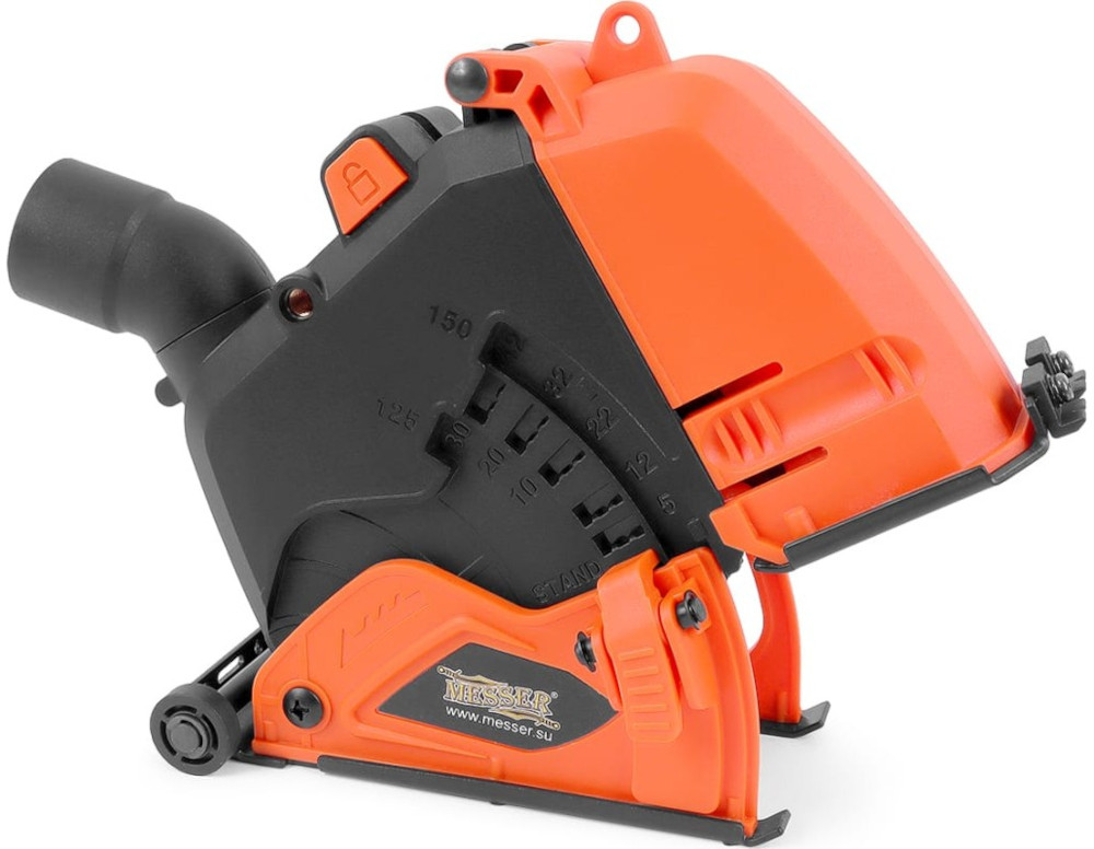 Пылезащитный кожух Messer предназначен для установки на угловые шлифовальные машины с диаметрами отрезных дисков 125 и 150 мм и диаметром шейки от 38 до 50 мм. Максимальная глубина резания диском 125 мм - 30 мм, 150 мм - 42 мм.